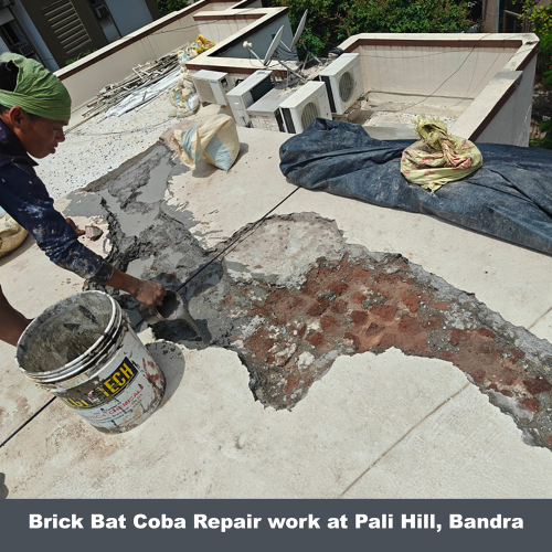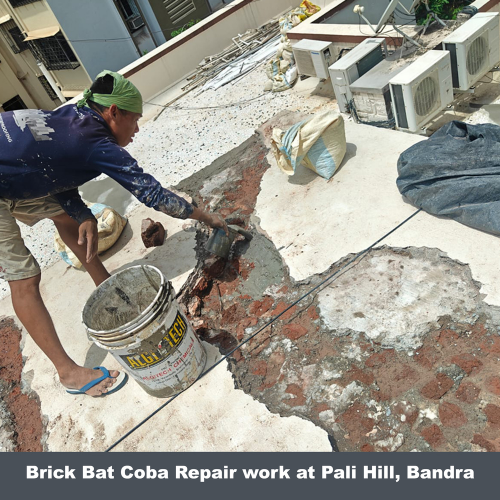 Completely replacing the Brick Bat Coba can be costly, making repair a practical and cost-effective alternative. The repair process involves removing damaged or loose sections, applying a waterproofing slurry, relaying brick bats with proper slope, and finishing with a fresh waterproof plaster layer. This restores effective drainage, reinforces the waterproofing system, and prevents future leakage — ensuring durability without the expense of full replacement.