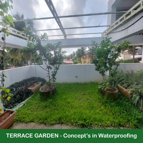 Terrace garden waterproofing is a specialized process designed to protect the building’s structural integrity while creating a durable, water-resistant barrier beneath the garden. This treatment shields the underlying structure from rain, irrigation water, and natural weathering. It is especially important for terrace gardens, as it prevents leakage, seepage, and long-term damage, ensuring both the health of the garden above and the safety of the building below.